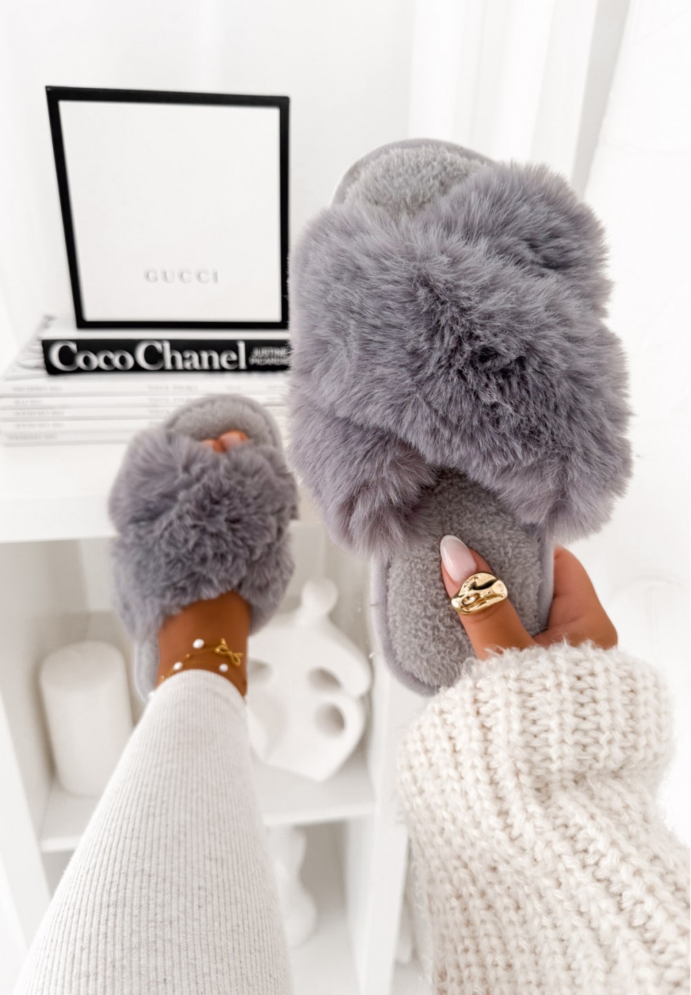 Mięciutkie, cieplutkie i niezwykle przyjemne w dotyku – te szare kapcie to kwintesencja domowego komfortu. Wykonane z puszystego, pluszowego materiału otulają stopy miękkością, a wkładka wykończona w tym samym stylu gwarantuje wygodę na każdym kroku. Na górze znajdują się dwa szerokie paski przełożone przez siebie, które tworzą efektowny, a jednocześnie bardzo przytulny design. Idealne na chłodne wieczory i leniwe poranki – sprawią, że każdy krok będzie czystą przyjemnością.