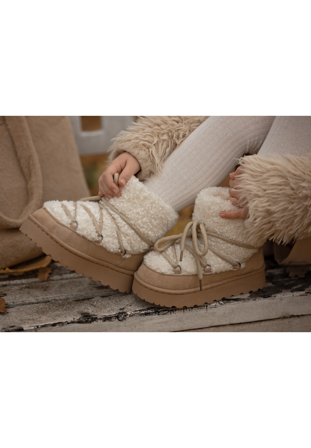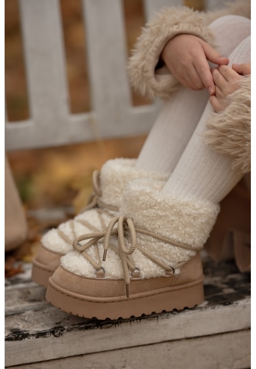 Odkryj urocze śniegowce Figa w delikatnym, jasnym, beżowym odcieniu — idealne dla małych miłośników zimowych zabaw. Ich mięciutkie, puszyste futerko otula stopy ciepłem, zapewniając komfort nawet podczas najbardziej mroźnych dni. Dzięki praktycznemu sznurowaniu buty świetnie dopasowują się do dziecięcej stopy, oferując stabilność i pewność kroku na śnieżnych ścieżkach. To połączenie funkcjonalności i słodkiego, zimowego stylu, które sprawi, że każdy spacer stanie się jeszcze przyjemniejszy.