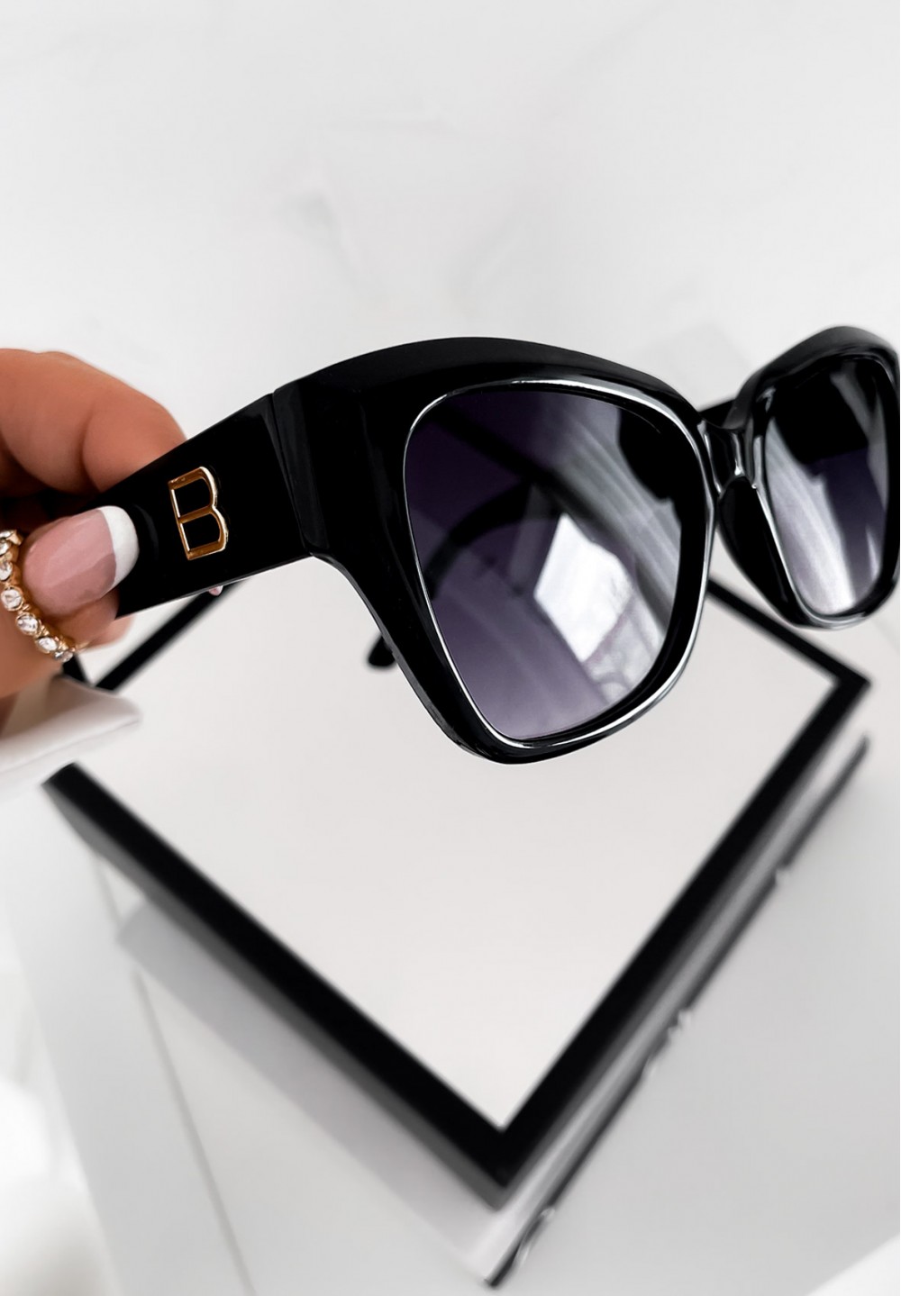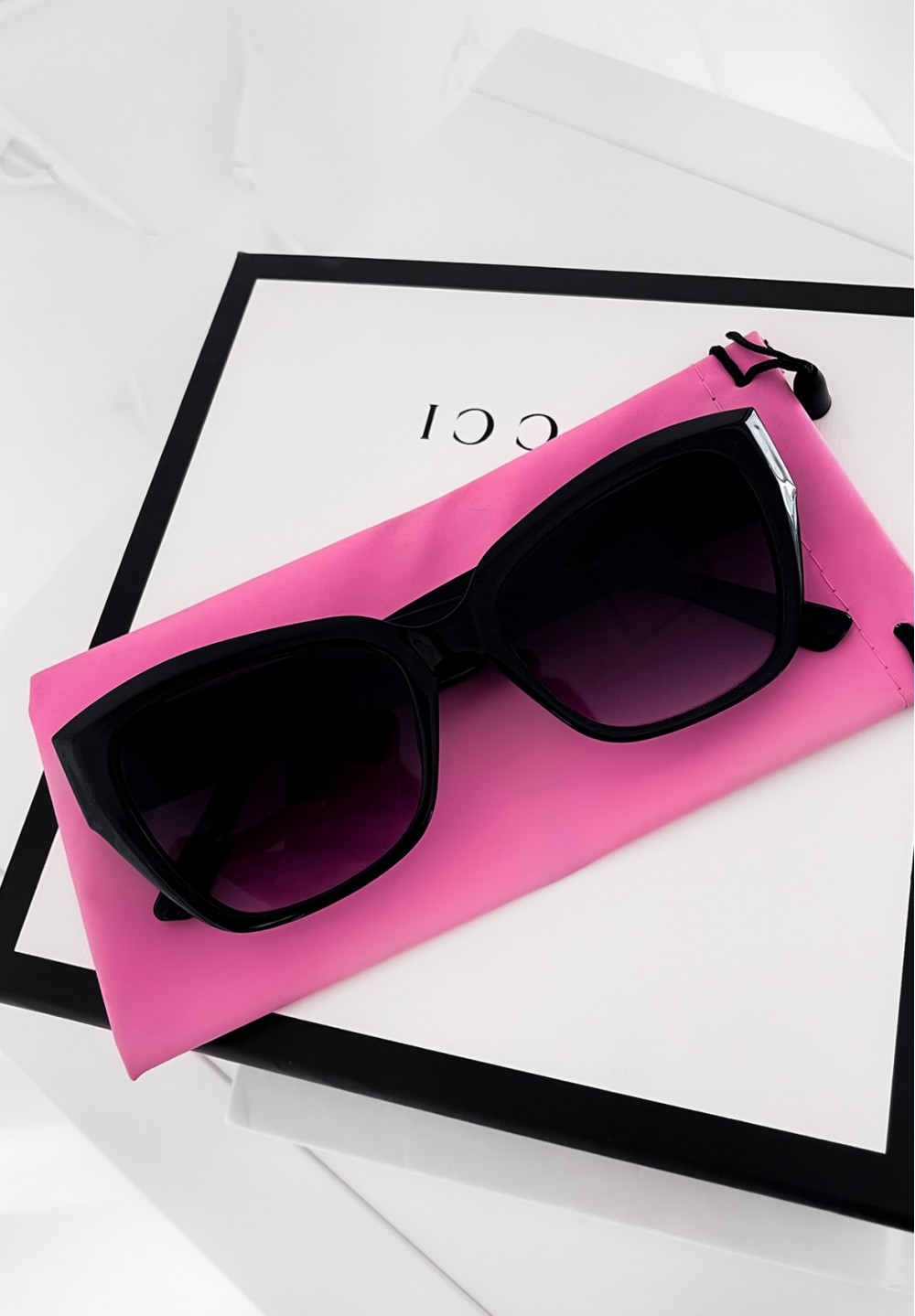Wyróżnij się wyjątkowym stylem! Te czarne okulary przeciwsłoneczne o kobiecym kształcie kocich oczu to idealne połączenie klasyki i modowego akcentu. Delikatna ozdoba w kolorze złotym umieszczona na zausznikach dodaje elegancji i subtelnego blasku. Wykonane z lekkiego, wygodnego materiału, zapewniają komfort noszenia przez cały dzień. W zestawie otrzymujesz materiałowe etui w różowym kolorze – idealne do bezpiecznego przechowywania okularów.