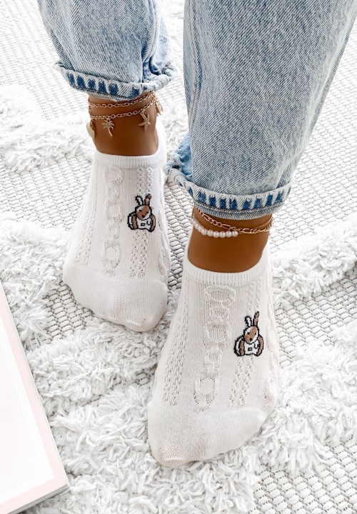 Skarpety Bawełniane Białe Z Króliczkiem Ercilia