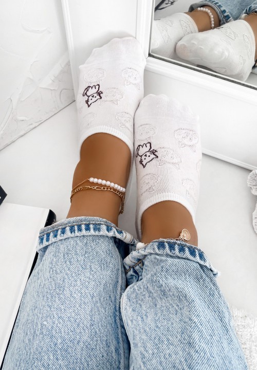 Skarpety Bawełniane Białe Z Kotkiem Ercilia