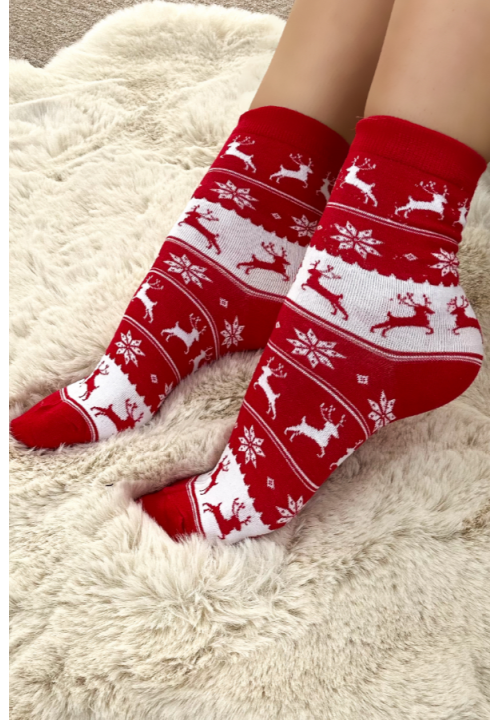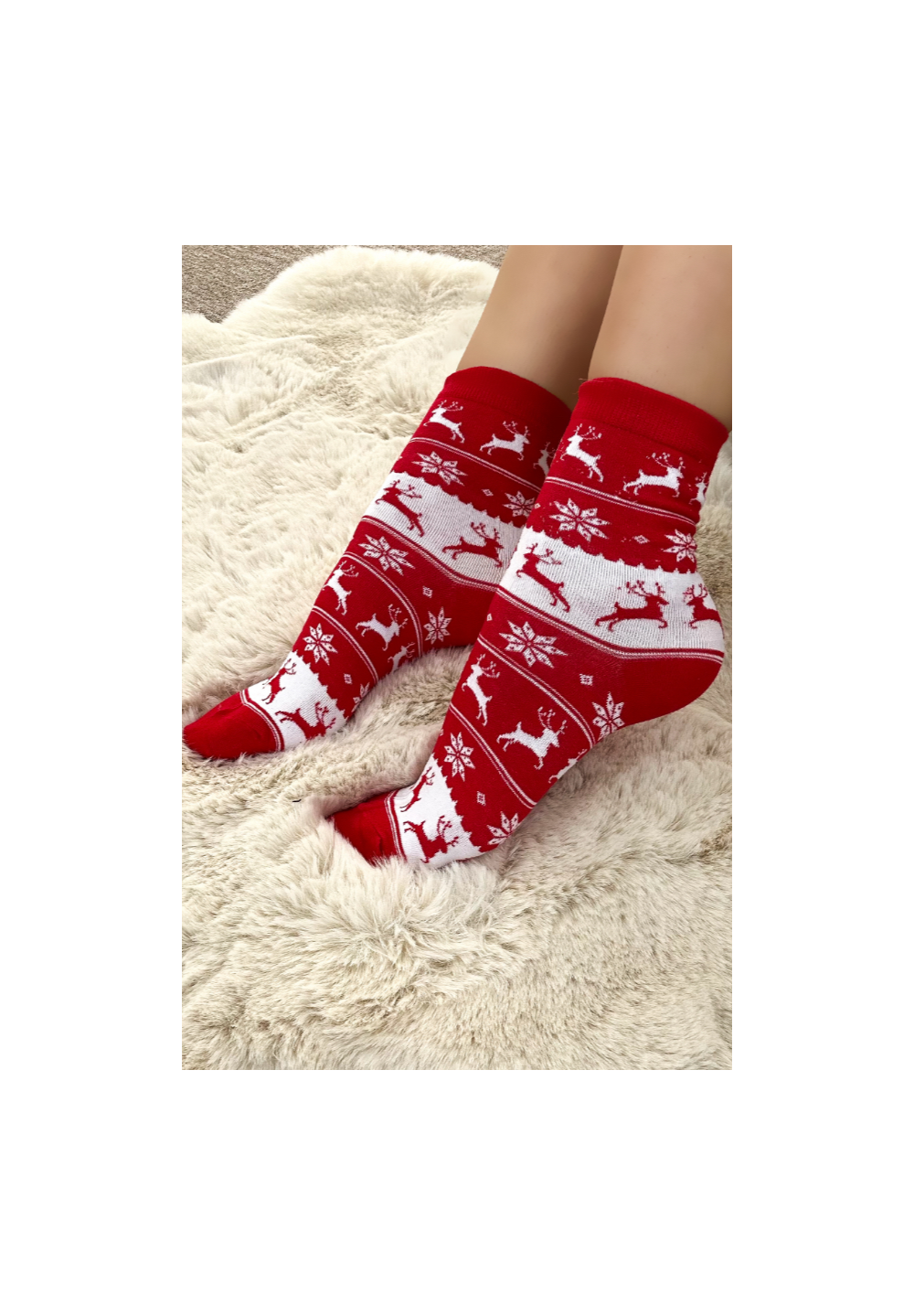 Świąteczny klimat i codzienna wygoda w jednym – te skarpety wykonano z miękkiej, oddychającej bawełny, która zapewnia przyjemny dotyk i komfort przez cały dzień. Naturalny materiał dba o odpowiednią cyrkulację powietra, a jednocześnie otula stopy delikatnym ciepłem. Idealne na zimowe, świąteczne dni – doskonale pasują do codziennych stylizacji, a podczas domowego odpoczynku dodają przytulności i odrobiny magicznego, świątecznego nastroju.