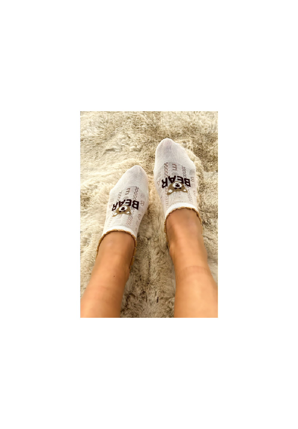 Te białe skarpetki typu stopki to połączenie klasycznej formy i delikatnych detali. Wykonane w całości z miękkiej, oddychającej bawełny, zapewniają wygodę i komfort noszenia przez cały dzień. Całą powierzchnię zdobią subtelne, tłoczone wzorki, które dodają stylu i lekkości.