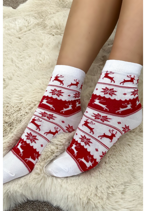 Świąteczny klimat i codzienna wygoda w jednym – te skarpety wykonano z miękkiej, oddychającej bawełny, która zapewnia przyjemny dotyk i komfort przez cały dzień. Naturalny materiał dba o odpowiednią cyrkulację powietra, a jednocześnie otula stopy delikatnym ciepłem. Idealne na zimowe, świąteczne dni – doskonale pasują do codziennych stylizacji, a podczas domowego odpoczynku dodają przytulności i odrobiny magicznego, świątecznego nastroju.