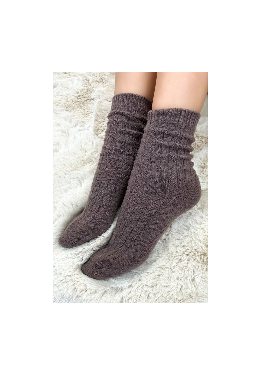Luksus i komfort w jednym – te skarpety zostały wykonane z miękkiego kaszmiru, który zachwyca swoją wyjątkową delikatnością i przyjemnością w dotyku. Grubszy materiał otula stopy ciepłem, a jednocześnie pozwala skórze oddychać, zapewniając pełen komfort noszenia. Idealne na chłodniejsze dni – sprawdzą się zarówno do codziennych stylizacji, jak i podczas domowego relaksu, dodając odrobiny elegancji i przytulności każdemu krokowi.