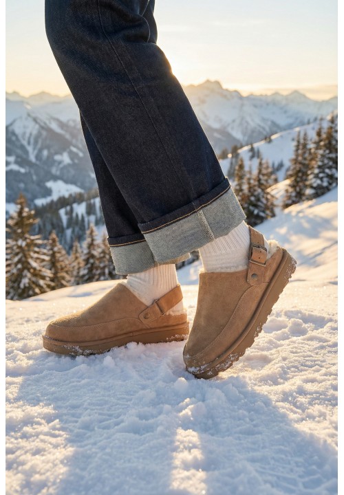 Przytulne i stylowe – te beżowe chodaki typu mule to połączenie modnego designu z maksymalnym komfortem. Wykonane z miękkich, przyjemnych w dotyku materiałów i wykończone ociepleniem wewnątrz, idealnie sprawdzą się w chłodniejsze dni. Osadzone na beżowej, lekkiej podeszwie, zapewniają wygodę noszenia zarówno w domu, jak i na zewnątrz. Minimalistyczny fason i stonowany kolor sprawiają, że łatwo dopasujesz je do każdej codziennej stylizacji.