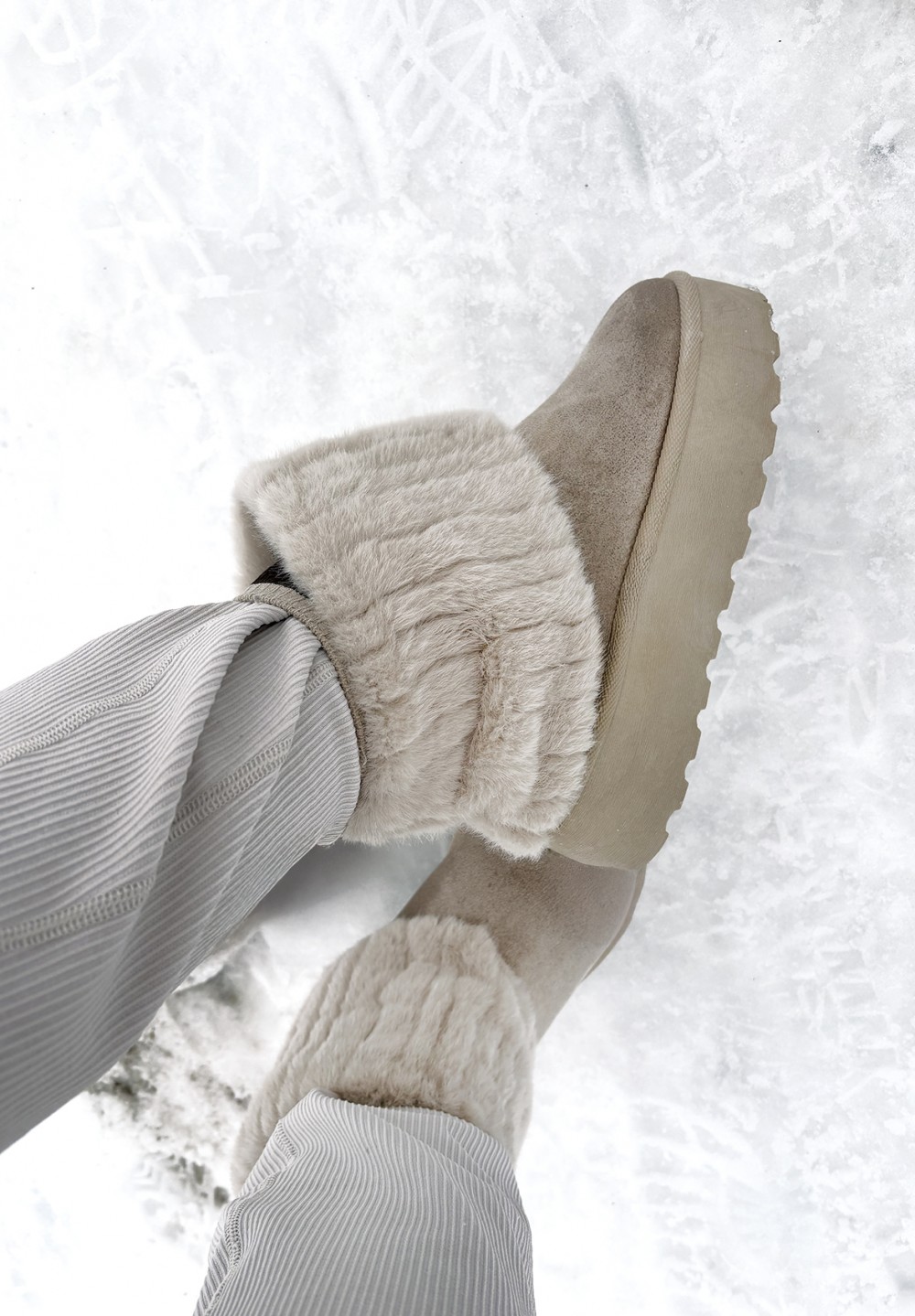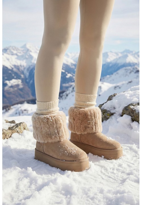 Stylowe botki zimowe z szerokim, miękkim futrzanym kołnierzem to idealna propozycja na mroźne dni. Wykonane z przyjemnego w dotyku materiału, świetnie izolują od zimna, a gruba, stabilna podeszwa zapewnia komfort i pewny krok na śniegu. Ich przytulne wnętrze i nowoczesny design sprawiają, że doskonale łączą funkcjonalność z modnym wyglądem. Idealne do codziennych zimowych stylizacji.