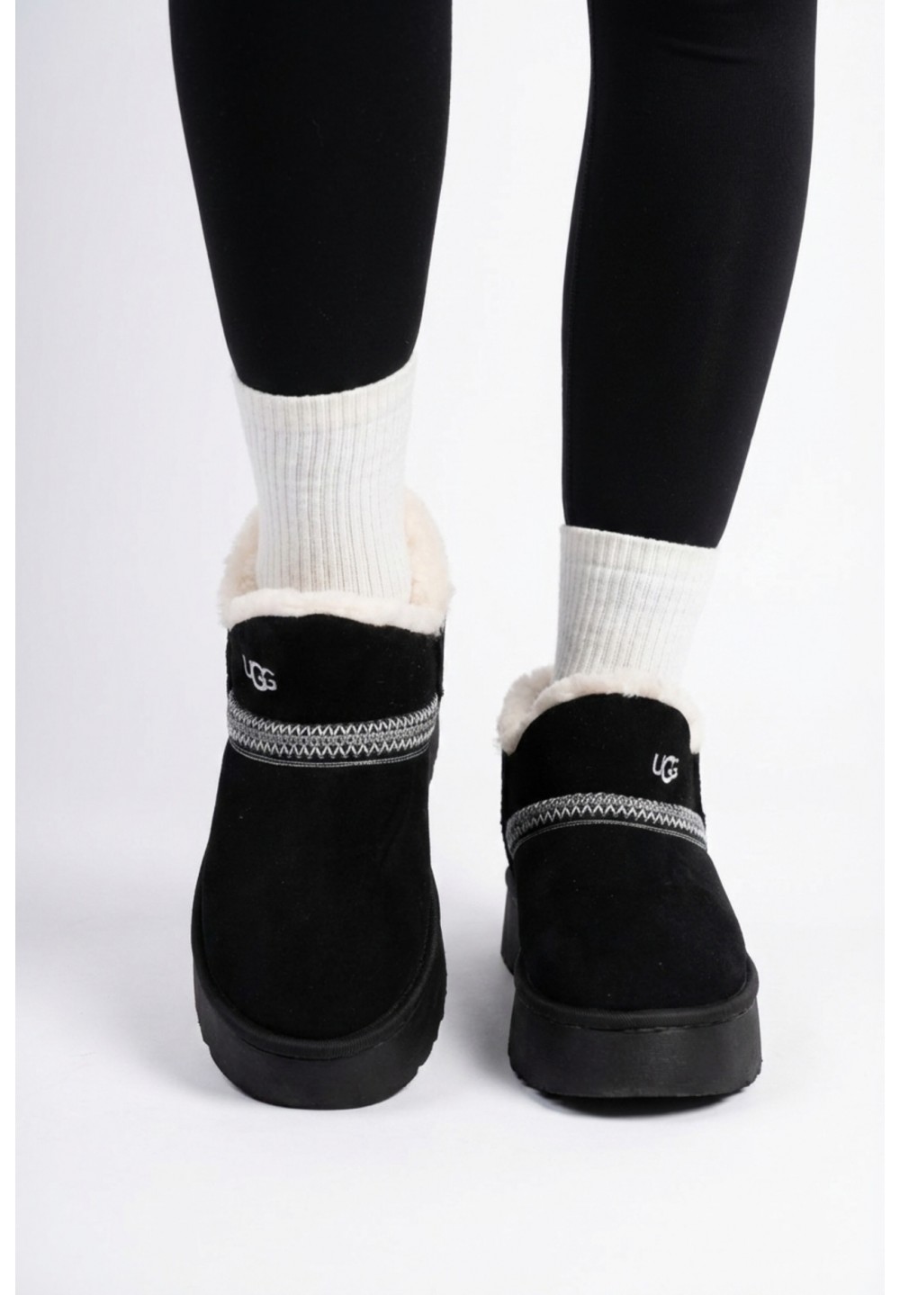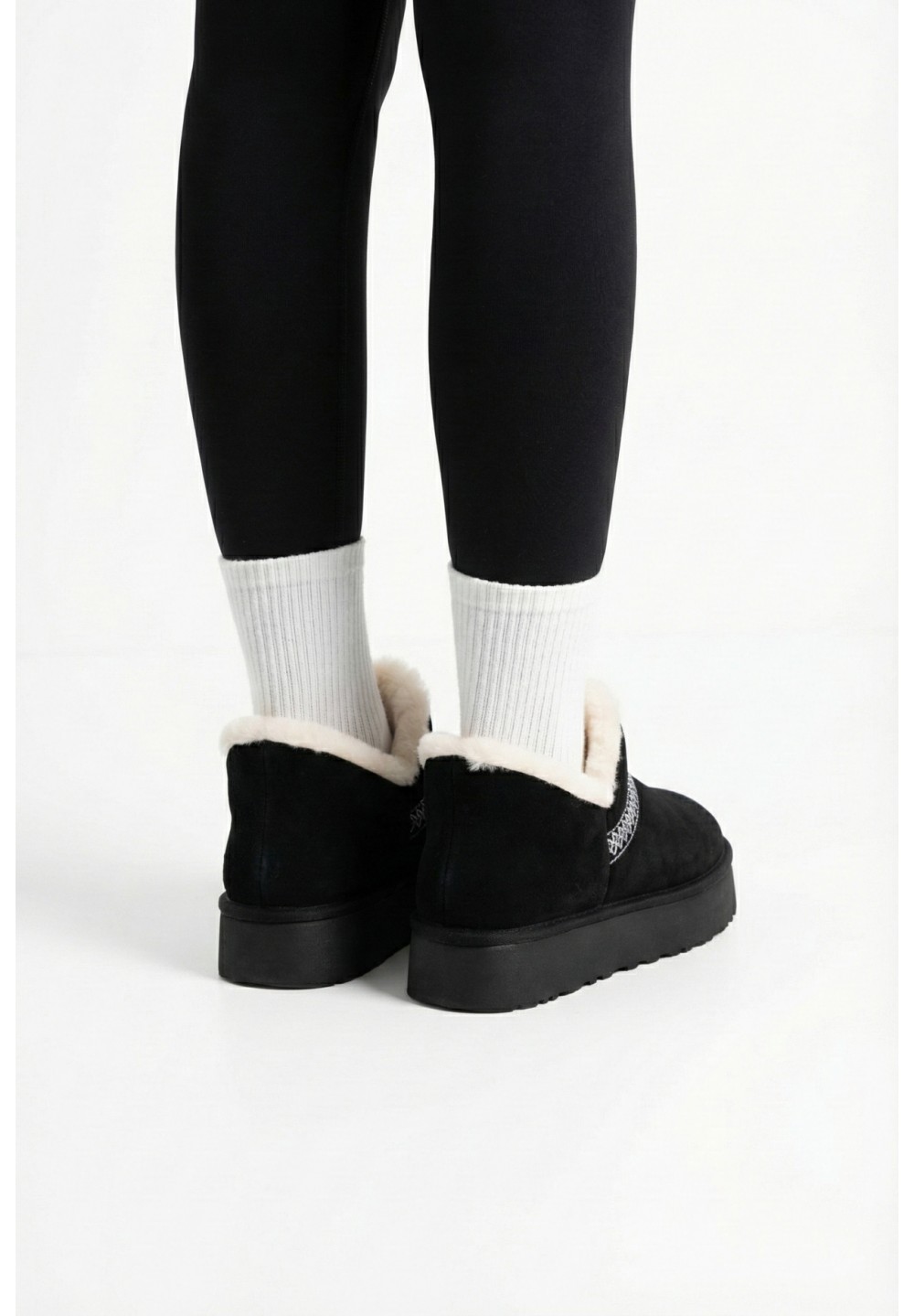 Miękkie, ocieplane botki zimowe z dekoracyjnym pasem i grubą, izolującą podeszwą. Wnętrze wyłożone puszystym futerkiem zapewnia ciepło i wygodę, a zamszowy materiał nadaje im stylowy, zimowy charakter. Idealne na śnieżne dni.
