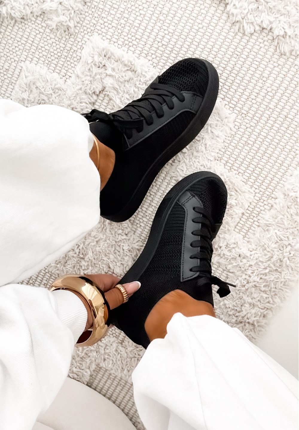 Postaw na wygodę i nowoczesny styl z naszymi czarnymi trampkami wykonanymi z oddychającego materiału siateczkowego. Dzięki lekkiej konstrukcji i czarnej podeszwie, świetnie sprawdzą się zarówno na spacer, jak i do codziennych, miejskich stylizacji. Model sznurowany, co pozwala idealnie dopasować but do stopy. Minimalistyczny wygląd sprawia, że łatwo zestawisz je z jeansami, sukienką czy sportowym outfitem. Idealne na wiosnę, lato i cieplejsze dni – wygodne, stylowe i przewiewne.