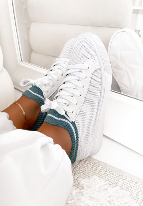 Trampki Białe Siateczkowe Z Siwym Paskiem Noely