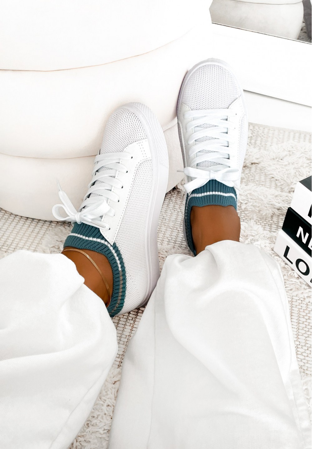 Postaw na komfort i nowoczesny wygląd z tymi białymi trampkami wykonanymi z przewiewnego materiału siateczkowego. Ich lekka konstrukcja zapewnia wygodę przez cały dzień, a klasyczna biała, gumowa podeszwa gwarantuje dobrą przyczepność i trwałość. Buty są sznurowane, co pozwala idealnie dopasować je do stopy. Dodatkowym akcentem jest siwy pasek przy kostce, który nadaje całości modnego, sportowego charakteru. Idealne na co dzień – do jeansów, szortów, a nawet sukienek. Minimalistyczny styl z nowoczesnym wykończeniem.